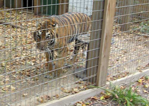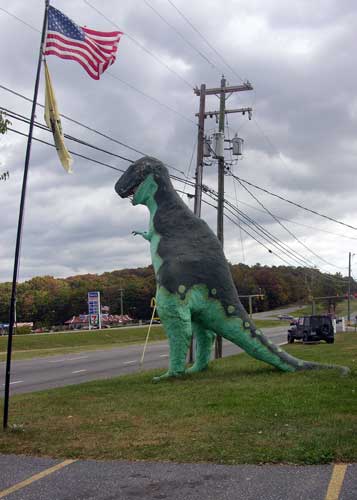 We decided it was time to travel to Shenandoah for a mid-week vacation. We figured fall in mid-week was the best way to see the fall colors as well as beat the crowds. So our trip was Tuesday through Thursday. We found the Luray Zoo, is a rescue station mainly for people who didn't want their exotic pets. The Zoo is not run by the city, state or any government entity, but relies on admission and donations for survival. It's a small zoo. It's not that greatly maintained in some areas (one bird exhibit had more poop than I've ever seen in one place). Some of the fencing needed help and a few of the animals needed bigger cages. However, you do get to see the animals pretty close up. Here's what we saw there: MANY snakes (what was astounding to me was the active nature of the snakes. They were rattling their tales moving a lot), a couple tortoises and frogs (one was the oldest tortoise in a small tank and one of the larges things I've ever seen), a couple alligators and some other fish rounded out the amphibian exhibit, which is the largest part of the zoo. The second largest part of the exhibit was probably birds including a Kookaburra, a ret-tailed hawk, a few other birds I don't remember and some condors who spread their wings for us. There were a handful of monkeys, a bobcat, a female Bengal Tiger, and some Wallabys, an Emu, a Coatimundi, a Lynx and a Camel. I think that's all there was as far as exotic animals. There was, and this was the best part for me, a petting zoo. It had some deer, a donkey, a couple young bulls, some goats and sheep I think. There were a few cages empty (I think there was a pig... I could hear it but didn't see it), and I think there was supposed to be a hedgehog or something... but I didn't see it. All of them came up to you. The donkey and bulls scared us a bit as their teeth are huge and they were trying to get the food from us. Anyway, the zoo was a must visit if you are visiting the caverns. Basically, it's across the street almost from the caverns. you can't miss it (you'll see the big dinosaur out front). there is a gift shop. I did not see any place to eat or drink, and I am not sure there was a rest room (though there might have been). It didn't take long to go through the area (maybe 30 minutes) but when we went we were totally alone and that made for much fun - especially in the petting area. There is no food/drinks allowed in the zoo. You won't be there too long so nothing special needed except quarters for the feed in the gumball type machine for the petting zoo. I'd recommend MANY quarters, as they are very hungry! Full price admission is 10.00 for adults and 5.00 for kids (under 2 is free). We got in free because of the package we had with the hotel. However, donations are welcome and proceeds from the store go to the zoo for feed and such, so please add a little extra as they need all they can get. I bought just a small fossil and a small piece of agate for my little collection of minerals.
